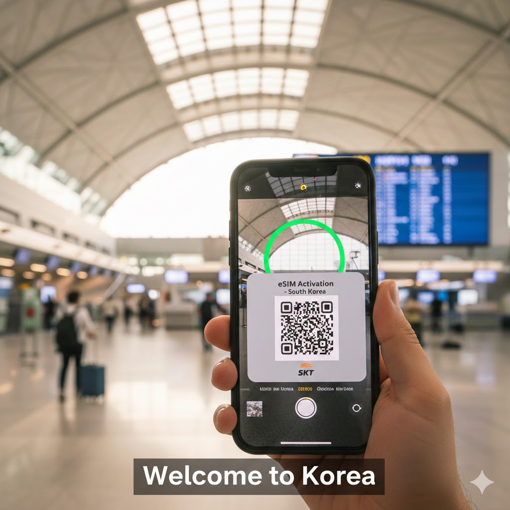 Kích hoạt dễ dàng: Chỉ cần quét mã QR khi có Wifi, bạn sẽ có mạng ngay khi máy bay hạ cánh xuống sân bay Incheon hay Gimhae.